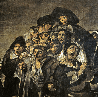 Goya’s paintings capture something primal and beast-like—Saturn devouring his son, or the mob in The Pilgrimage to San Isidro, their mouths agape in thrilled lunacy. These works symbolize unrestrained, collective rage or abandonment.